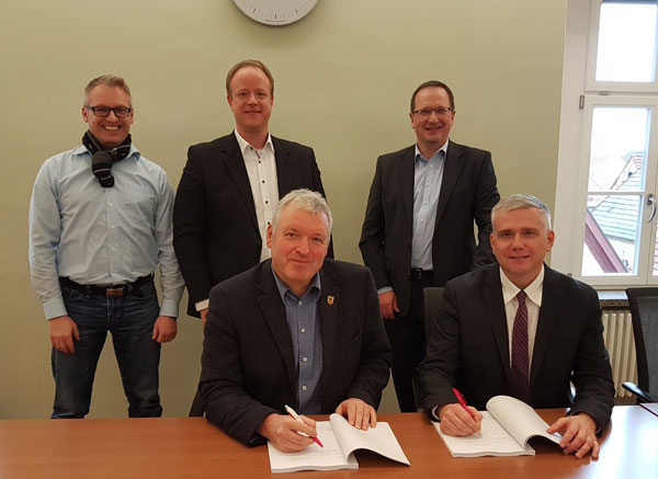 „Wir freuen uns, dass wir mit unserem Angebot die Stadt überzeugen konnten“, sagt Andreas Rudloff, Regionalmanager der Deutschen Telekom. „Wir legen heute einen weiteren Grundstein für die digitale Zukunft in Ebern. Das Netz wird immer auf dem neuesten Stand sein. Dafür werden wir sorgen.“ „Mit dieser Technik spielt Ebern in der Champions League. Wir versorgen Gebäude in den Gebieten Albersdorf, Bischwind am Raueneck, Ebern, Eyrichshof, Fischbach, Gemünd, Hetschingsmühle, Lützelebern, Ruppach, Ruppachsmühle, Sachsenhof, und Sandhof“, ergänzt Thomas Weigand, kommunaler Ansprechpartner Deutsche Telekom Technik.