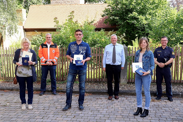 Sie haben geholfen und nicht weggesehen. Eigentlich selbstverständlich sollte man meinen, doch das ist es bei Weitem nicht, wie Fachleute von Polizei, Rotem Kreuz und Feuerwehr bei der Ehrung am Donnerstagnachmittag (9. Juli) im Ämtergebäude in Ebern deutlich machten. Ruth Sauerteig, Marion Müller und Alexander Dorst haben nicht gezögert, als sie an diesem Samstagnachmittag auf der Bundesstraße 279 nahe Herbelsdorf (Gemeinde Pfarrweisach) ganz unerwartet in eine Situation gekommen sind, vor denen viele Verkehrsteilnehmer Angst haben: Mitten auf der Straße steht ein Auto, eine Frau an der Fahrerseite und redet auf ihren bewusstlosen Mann ein. Die drei Ersthelfer, die kurz nacheinander mit ihren Autos an den Unglücksort kommen, halten, bieten ihre Hilfe an und werden in den nächsten zehn Minuten gemeinsam ein Menschenleben retten.