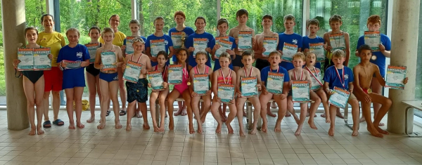 Das Trainerteam ist besonder stolz auf die Kleinsten. Vor kurzem erst das Seepferdchen gemacht und dann direkt zur Bezirksmeisterschaft. Aber alle zusammen sind souverän geschwommen und haben Alles gegeben.