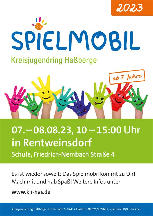 Wie der Name bereits sagt: Das Spielmobil ist mobil, also beweglich. Es ist nicht notwendig, dass die Kinder ihr Umfeld verlassen, denn das Spielmobil wird dort eingesetzt, wo die Zielgruppe im Alter ab sieben Jahren lebt. Nächste Woche am 07. und 08. August, kommt das Spielmobil nach Rentweinsdorf.