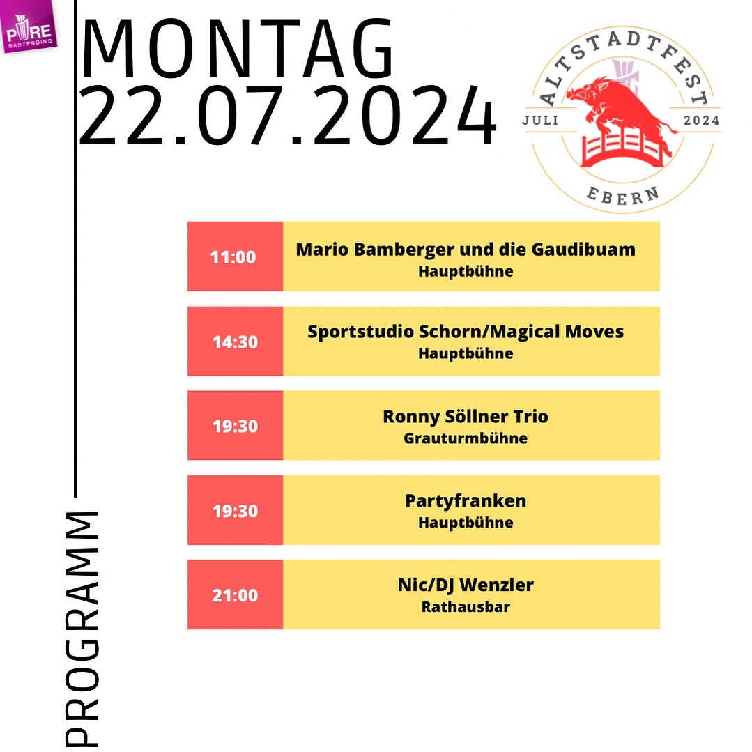 Das diesjährige Eberner Altstadtfest findet vom 20. bis 22. Juli statt und bietet erneut ein umfangreiches Programm aus Musik, Comedy, Tanz und Kulinarik inmitten der malerischen Gemäuer. Zum ersten Mal wird das Fest vom neuen Festwirt Kai Hofmann organisiert. Ihm sowie der Stadt Ebern war es wichtig, die Tradition des Festes zu bewahren und gleichzeitig die Weichen für die Zukunft zu stellen. Besonders erfreulich ist, dass der Eintritt weiterhin an allen Tagen kostenlos ist.