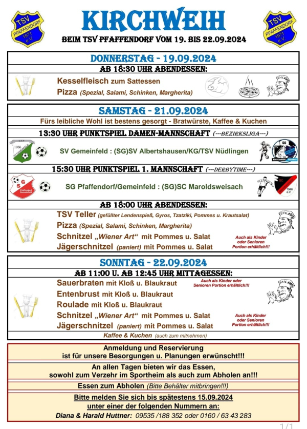 Der TSV Pfaffendorf lädt vom 19.09.-22.09.2024 zur Kirchweih nach Pfaffendorf ein.