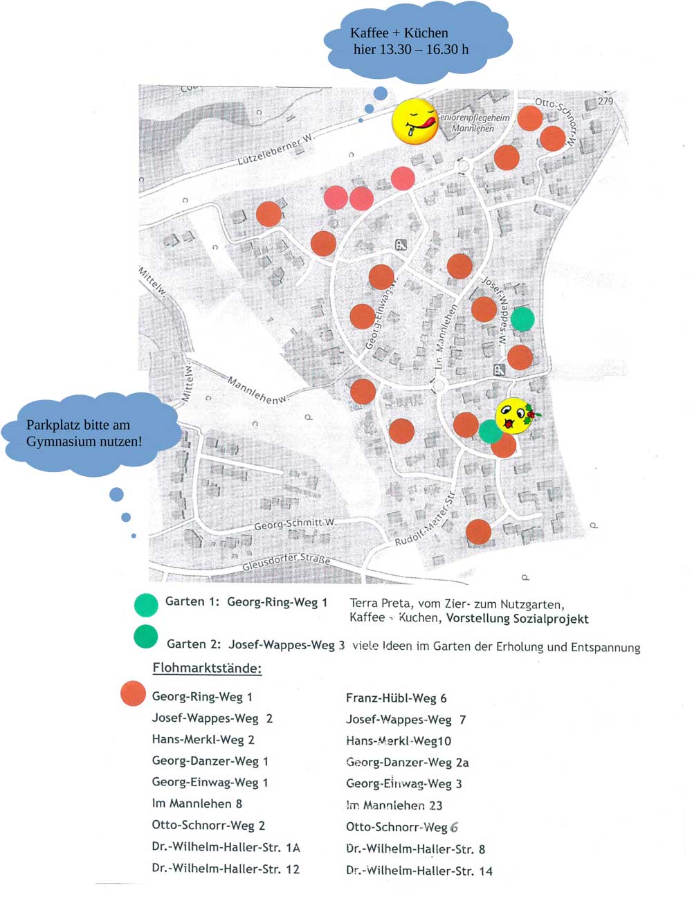 Ebern – Mannlehen: Am Sonntag, den 01.06.2025 von 10 – 17 Uhr findet in Ebern im Mannlehen in Verbindung mit dem Tag der offenen Gartentür in Ebern, Unterpreppach, Jesserndorf und Reutersbrunn ein Garagenflohmarkt (20 Teilnehmer, incl. Kinderflohmarkt, 2 Gärten – Thema: Umgestaltung vom Zier- zum Nutzgarten, Terra Preta wo: Georg-Ring-Weg 1 und Erholung und Entspannung im eigenen Garten wo: Josef-Wappes-Weg 3 ) sowie die Vorstellung eines Sozialprojektes (Nachbarschaftshilfe neu denken - Win, win für alle Beteiligten!) statt.