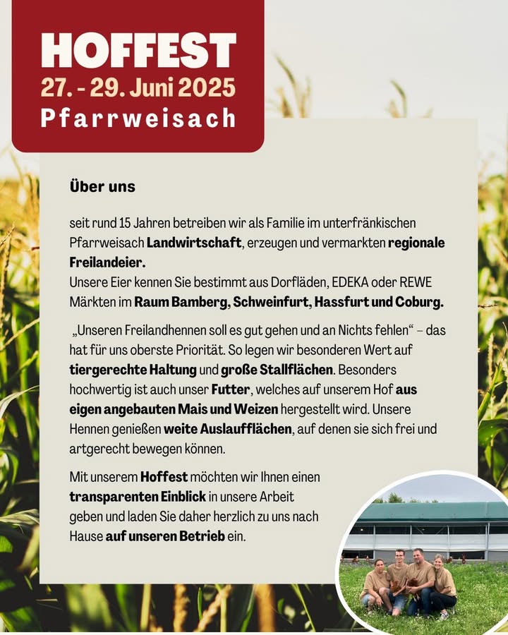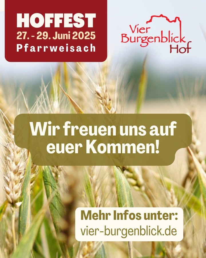 Einladung zum Hoffest des Vier-Burgenblick Hofs in der Bahnhofstraße 27, 96176 Pfarrweisach vom 27. - 29. Juni 2025