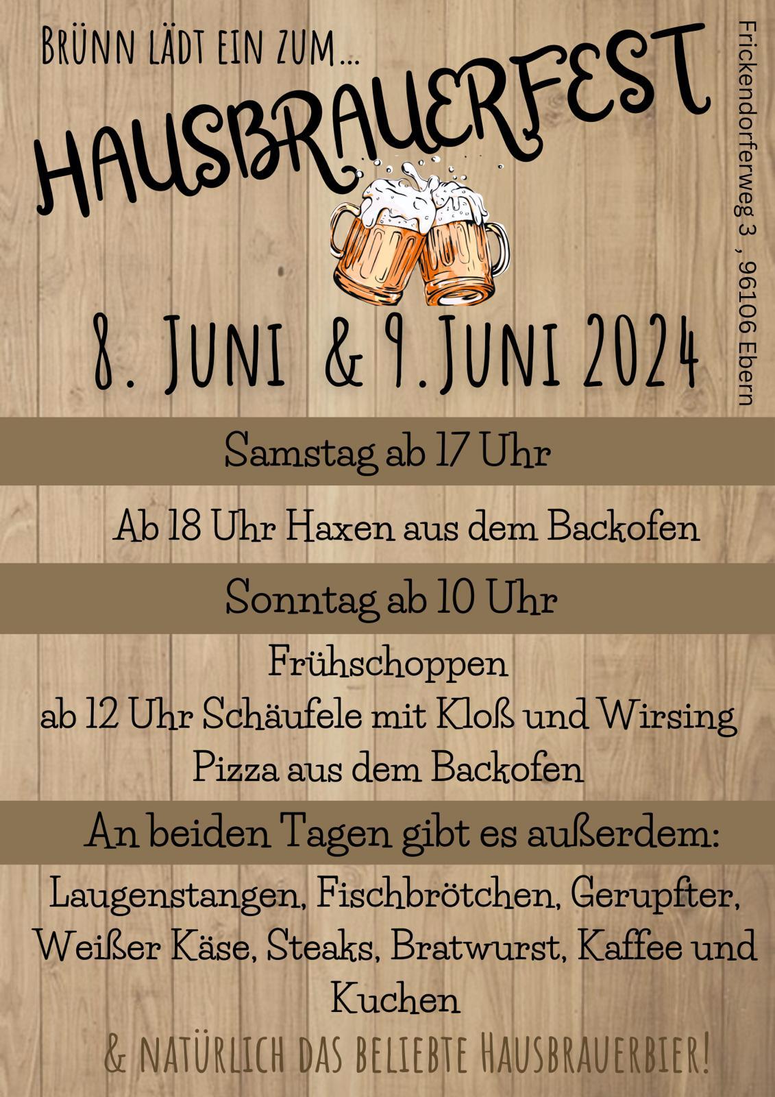 Am 08. und 09. Juni 2024 lädt der Feuerwehrverein Brünn wieder zum traditionellen Hausbrauerfest ein.