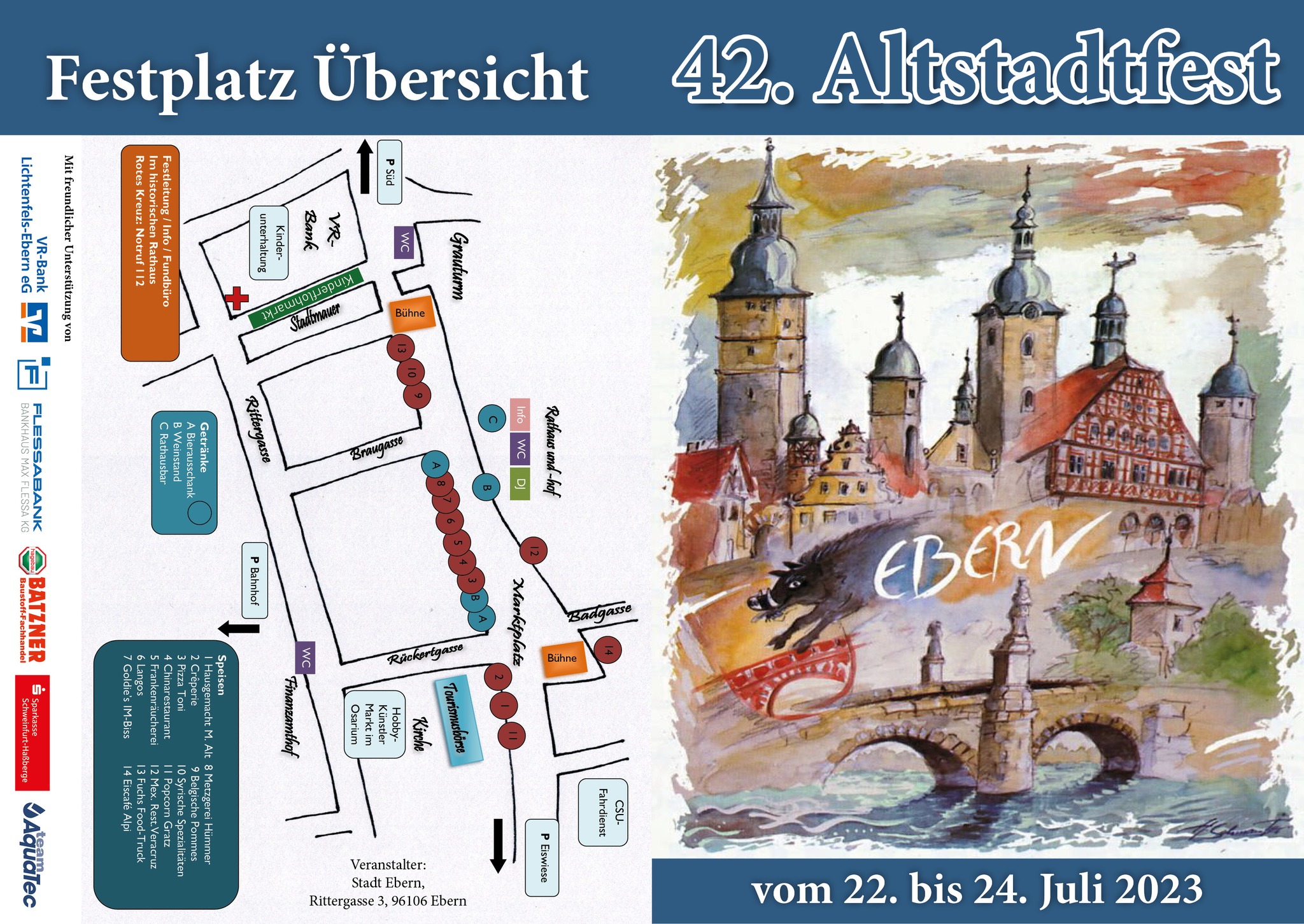 An diesem Wochenende (22. bis 24. Juli 2023) ist es wieder soweit. Die Eberner Altstadt verwandelt sich in eine Feiermeile. Hier findet ihr das Festprogramm. Kommt vorbei und habt Spaß.