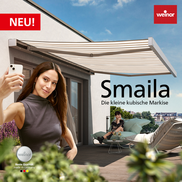 Small, smart, Smaila! Die kleine kubische Kassetten-Markise Smaila ist die perfekte Lösung für deine kleine Terrasse oder deinen Balkon. Wenn die Sonne im Sommer hoch steht, spendet sie dir schützenden Schatten und bietet dir ein gemütliches Plätzchen zum Entspannen. Freu dich auf unbeschwertes Outdoor Living! Du möchtest auch unbedingt eine Smaila für deine Terrasse oder deinen Balkon? Dann kommt einfach mal bei der Fa. Parkett- & Raumausstattung Müller in der Rudolf-Diesel-Strasse 5 vorbei! Wir freuen uns auf euren Besuch.