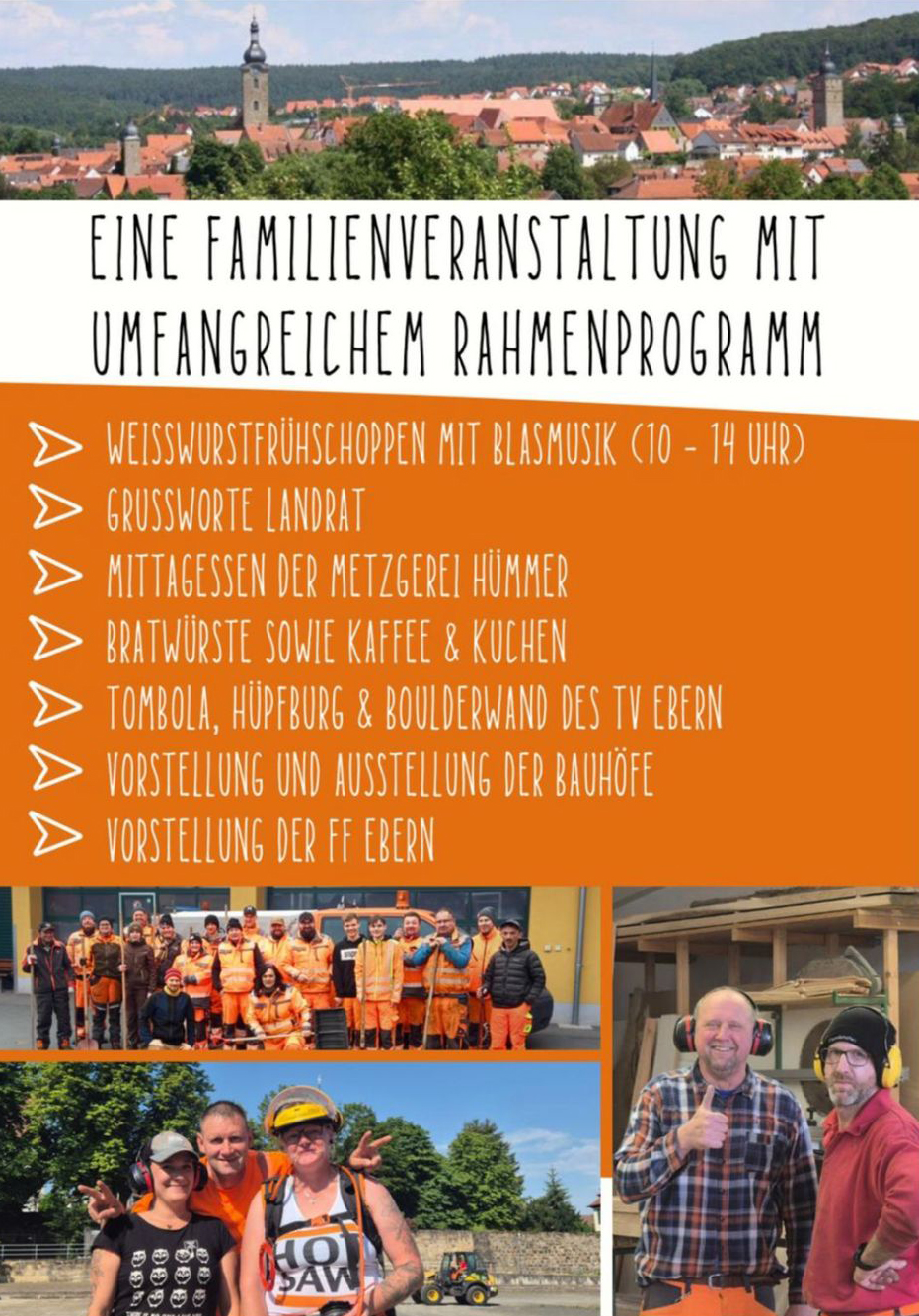 Am Sonntag 04. Mai 2025 öffnet der Bauhof Ebern von 10 bis 17 Uhr seine Tore für die Öffentlichkeit. Hier wird euch eine bunte Familienveranstaltung mit umfangreichem Rahmenprogramm geboten.