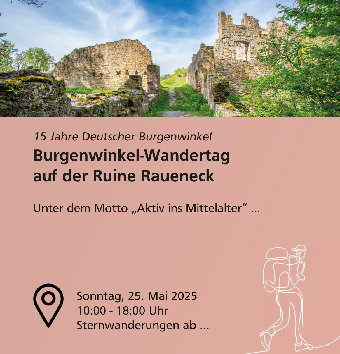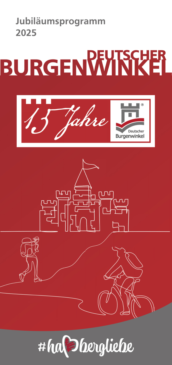 Der Zweckverband Deutscher Burgenwinkel begeht heuer sein 15jähriges Jubiläum. Dazu wird es einige Veranstaltungen geben. Ein Höhepunkt wird der 2. Burgenwinkelwandertag, der am 25. Mai 2025 stattfindet.