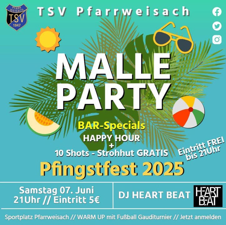 Bald ist es wieder soweit! Das Pfingstfest-Orga-Team des TSV Pfarrweisach hat wieder ganze Arbeit geleistet und ein tolles Programm für das Festwochenende auf die Beine gestellt.