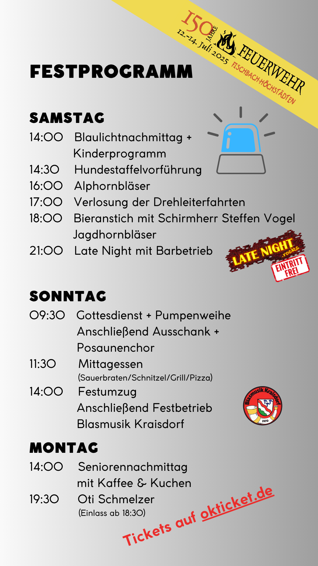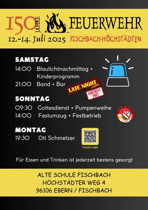 Ein stolzes Jubiläum steht bevor: Die Freiwillige Feuerwehr Fischbach-Höchstädten blickt in diesem Jahr auf 150 Jahre engagierten Einsatz für die Sicherheit der Bürgerinnen und Bürger zurück. Gefeiert wird dieses besondere Ereignis vom 12. bis 14. Juli 2025 mit einem großen Festwochenende, das die gesamte Gemeinde zusammenbringen soll.