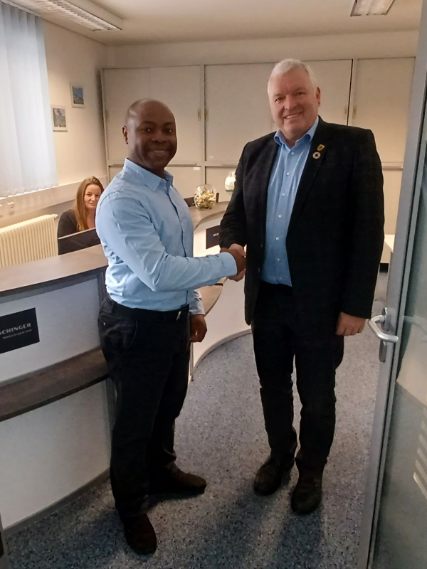 Bürgermeister Jürgen Hennemann begrüßt Dr. Innocent und die Mitarbeiterinnen in den neu eröffneten Praxisräumen im ersten Stock des Sparkassengebäudes am Marktplatz und wünscht ihm persönlich viel Erfolg für sein Augenarztzentrum und die Verwirklichung seiner umfangreichen Angebote, sowie der Praxis viele Patienten.