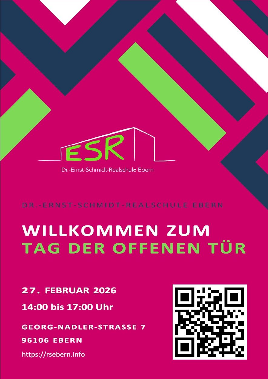 An der Dr.-Ernst-Schmidt-Realschule in Ebern findet am Freitag, 27. Februar 2026 von 14:00 Uhr bis 17:00 Uhr ein Tag der offenen Tür statt. Hier gibt es die Möglichkeit das facettenreiche Schulleben näher kennen zu lernen. Das vielfältige Angebot richtet sich vor allem an die jetzigen Viertklässler und ihre Familien um die, evtl. in Frage kommende weiterführende Schule, etwas näher kennenzulernen. Aber natürlich sind auch alle anderen interessierten Eltern und Schüler ganz herzlich eingeladen.
